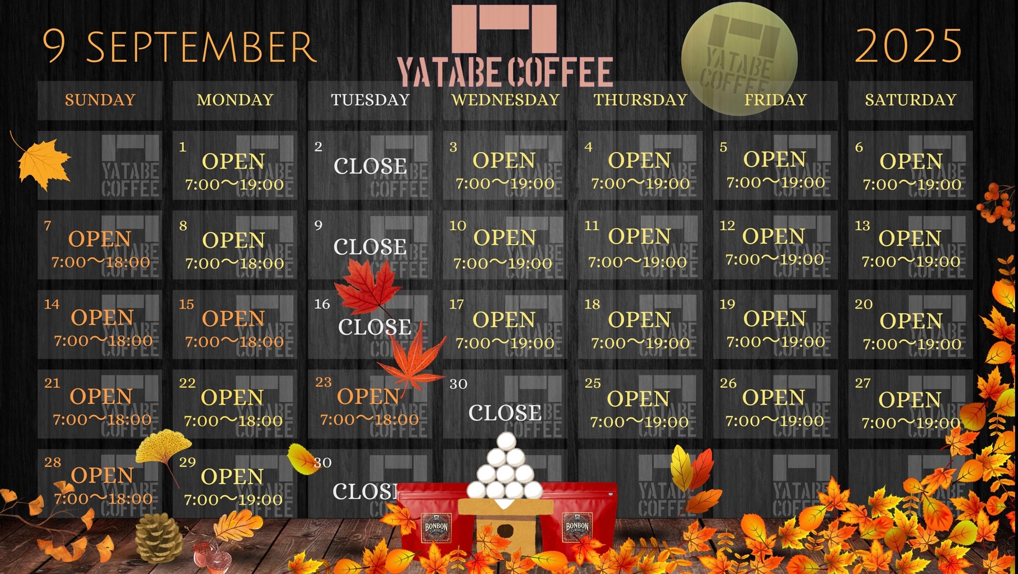 9月の営業カレンダー | YATABE COFFEE